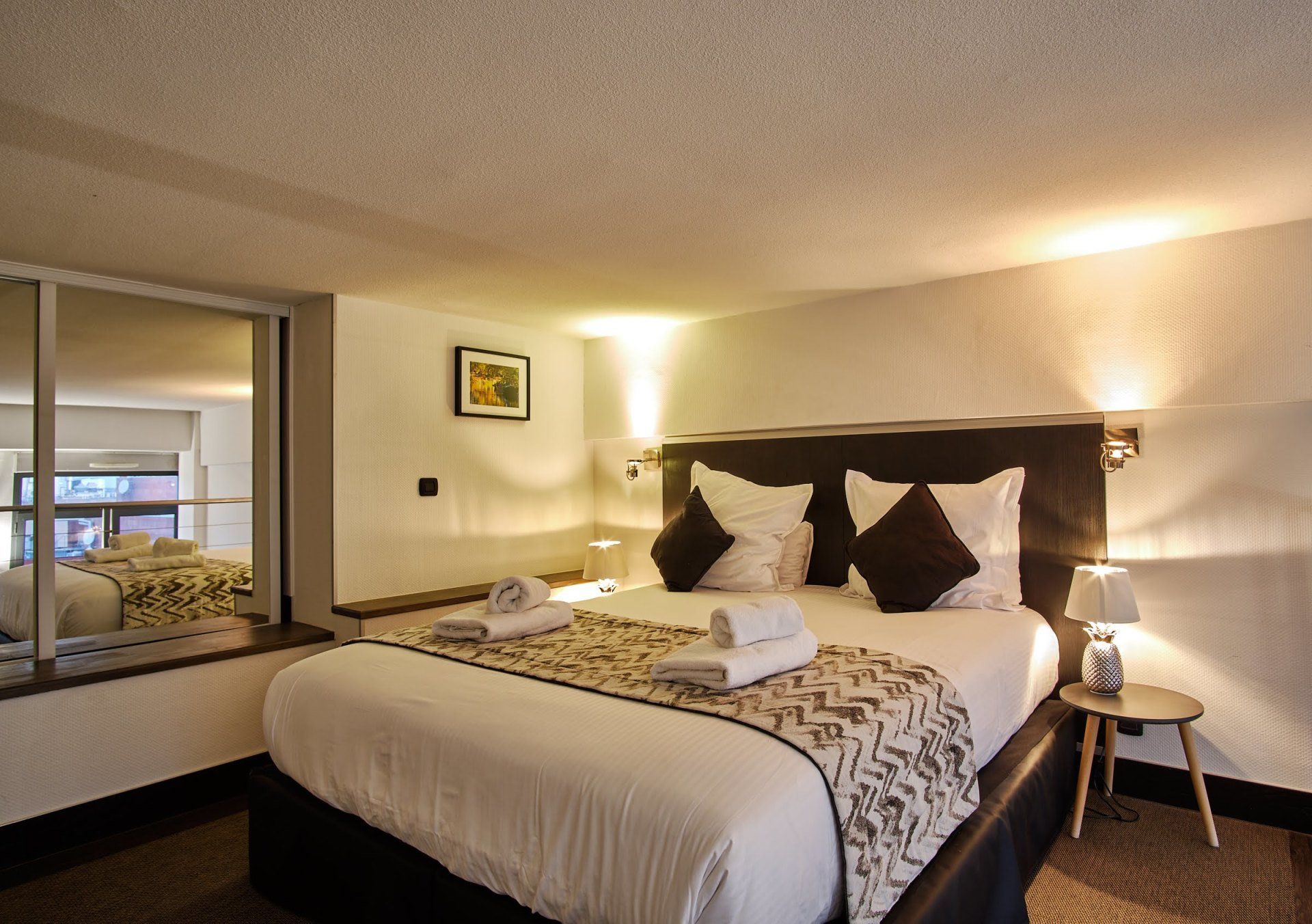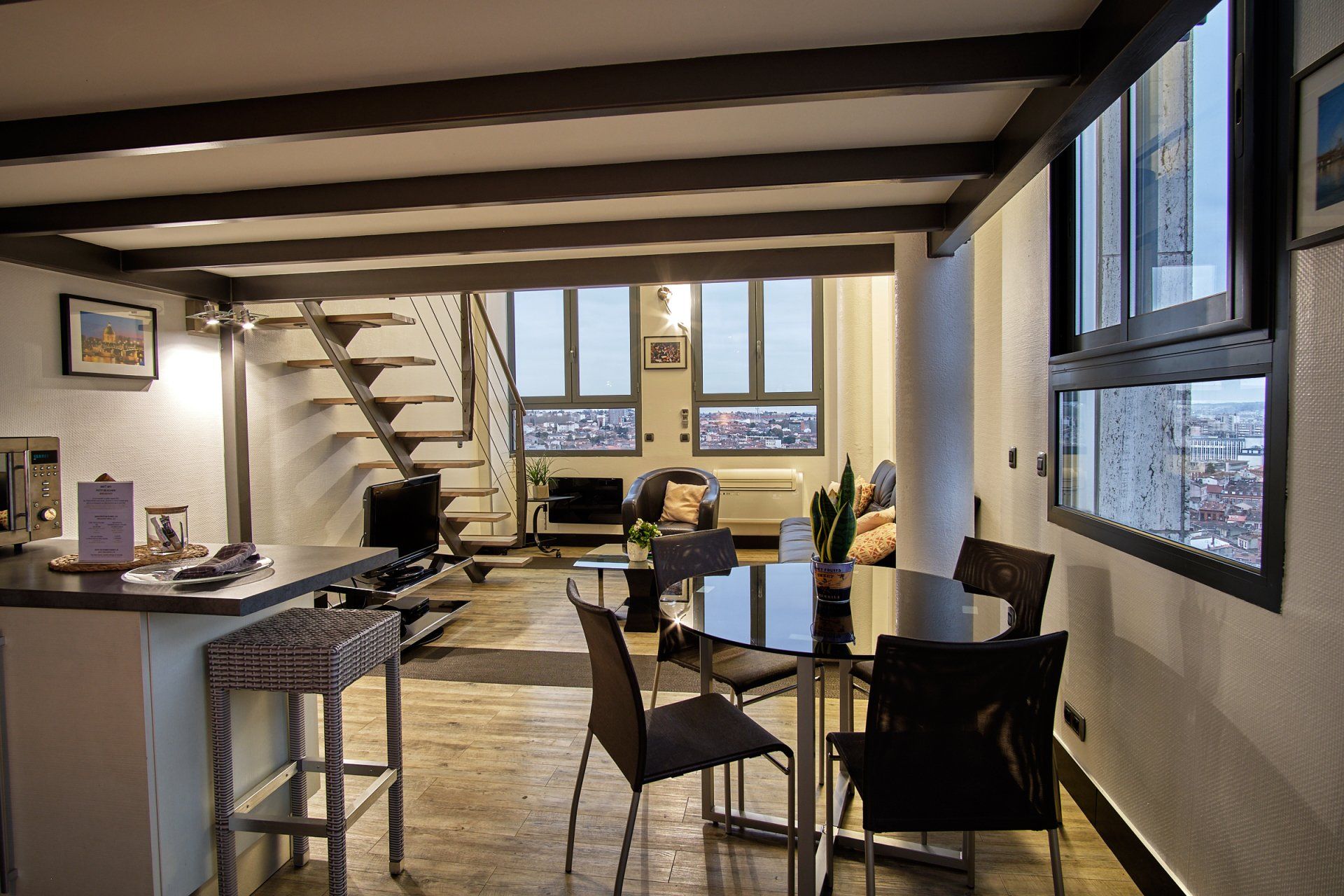 我们的酒店是图卢兹最高建筑之一,其所有复式客房都处于酒店最高两层,为住客展示了独特的城市全景。每一套精装公寓都经过精心设计和调整,如同真正的双层复式公寓一样,为您的住宿提供最高的舒适度。设施包括: