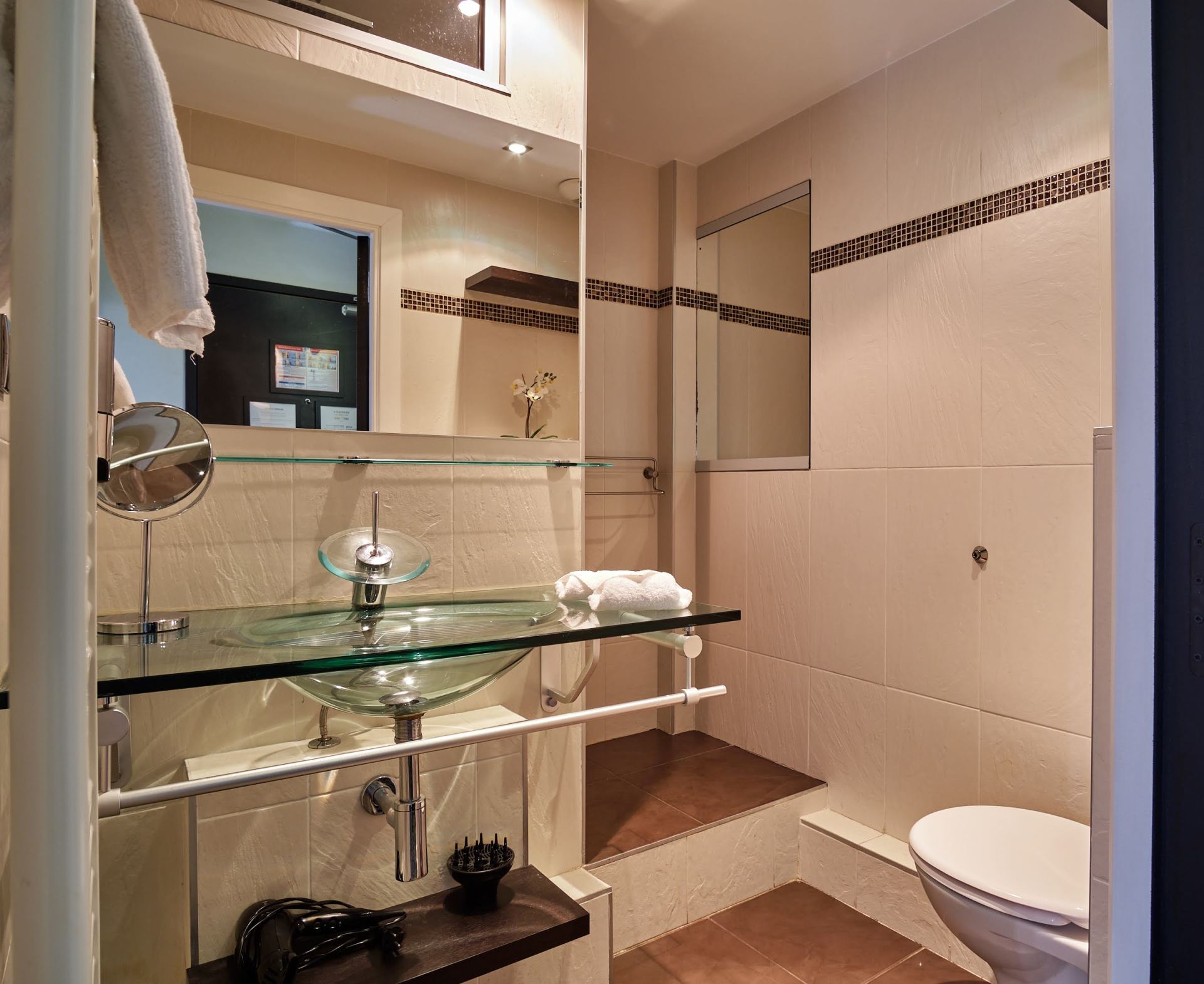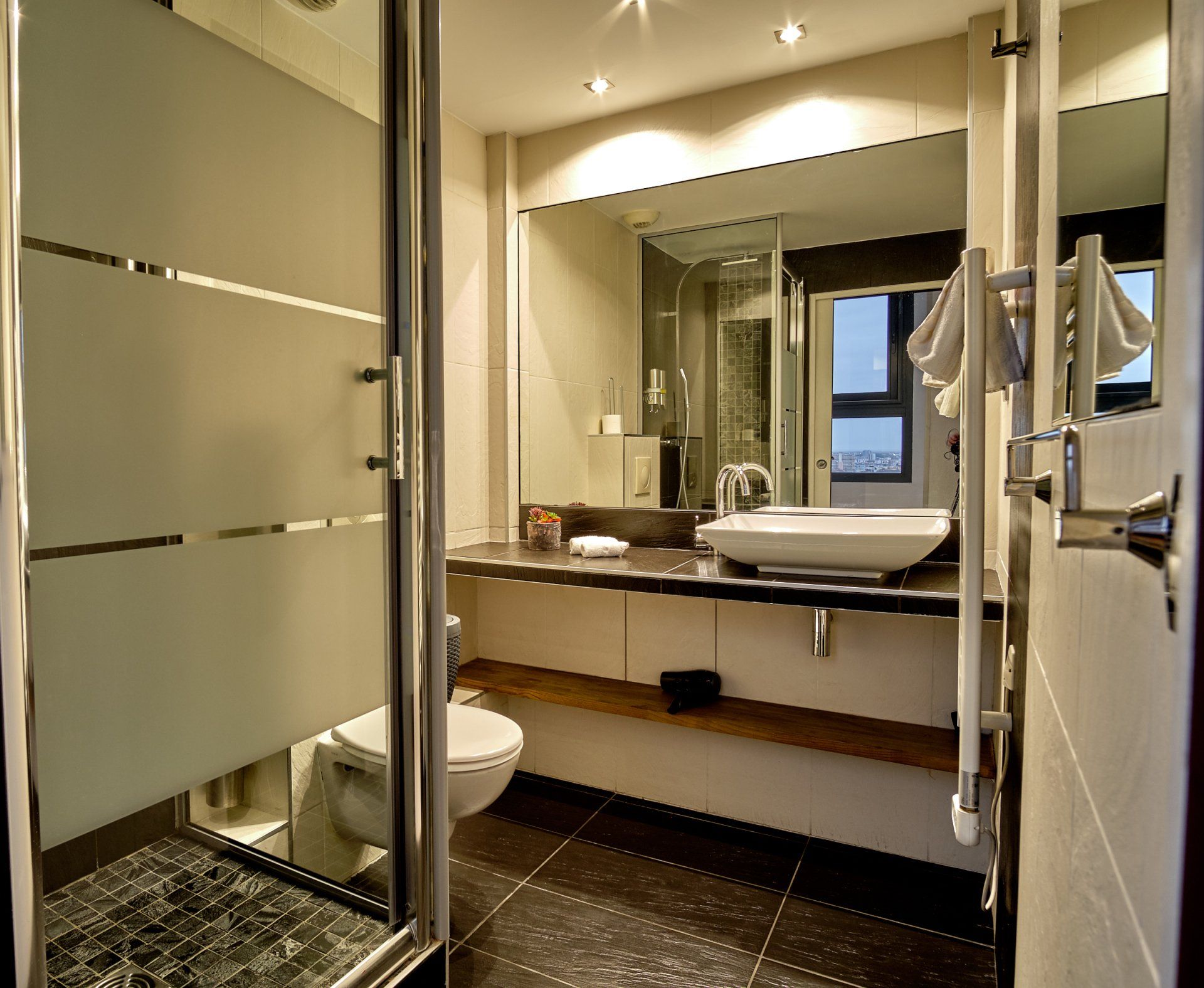 - 带有卫生间的淋浴室 (毛巾烘干架和吹风机)